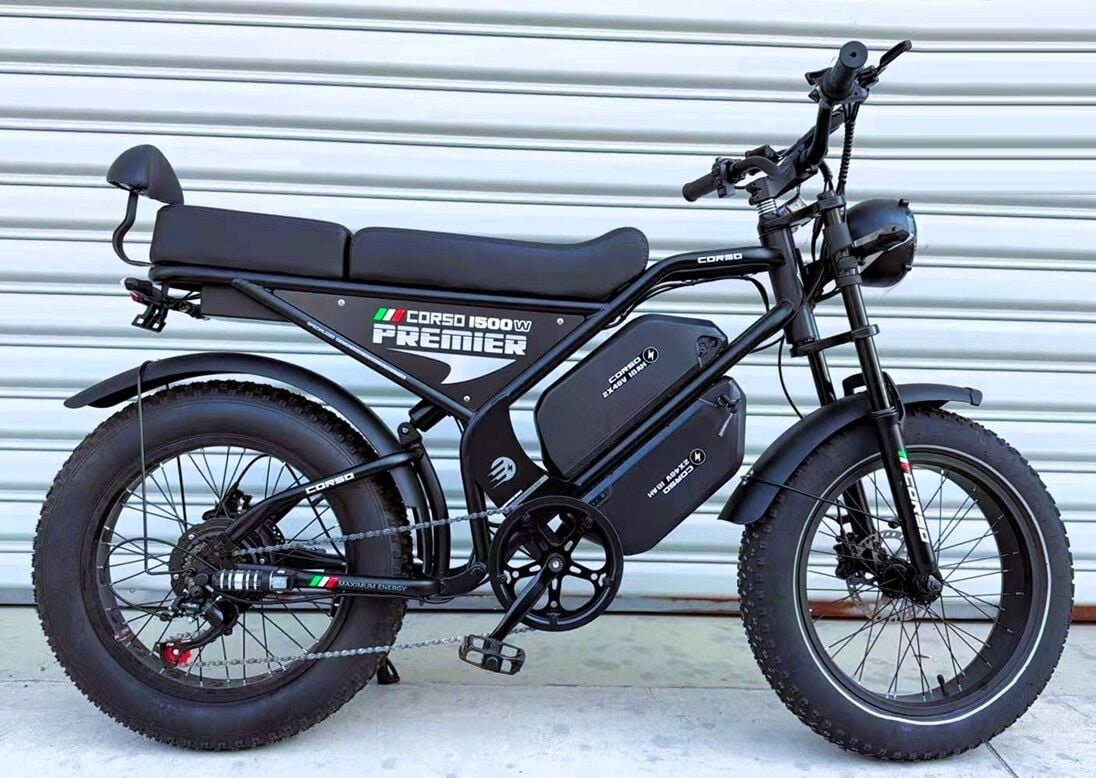 Corso Premier — потужний електрофетбайк з двигуном 1500W та двома літієвими акумуляторами 48V/18Ah, орієнтований на швидкі міські поїздки та бездоріжжя. Забезпечує запас ходу до 63 км при середній швидкості 35–40 км/год (вага райдера 75 кг) і максимальну швидкість до 64 км/год. Оснащений гідравлічними гальмами та великим LCD-дисплеєм з NFC-доступом.