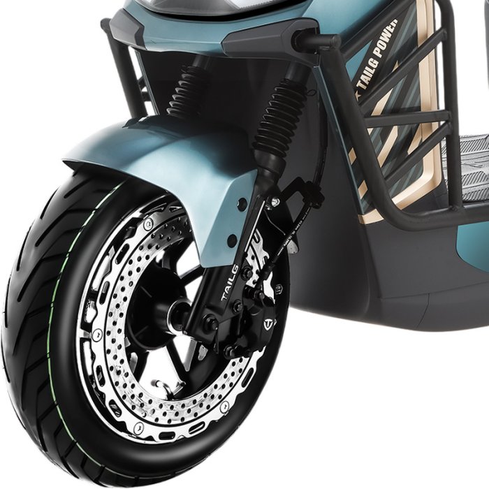 Електроскутер Tailg F-72/D01 оснащений гідравлічною підвіскою, що ефективно поглинає нерівності дороги. Потужна LED-фара з режимом денного світла, габаритні вогні та поворотники забезпечують чудову видимість у будь-який час доби. Гідравлічні гальма гарантують впевнене та безпечне гальмування навіть на високій швидкості.