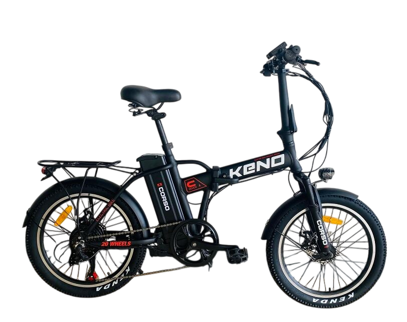 Завдяки складному алюмінієвому керму, знімному акумулятору та широким колесам KENDA 20×2.3’’, Corso Keno вирізняється високою мобільністю, комфортом та практичністю. Це чудовий вибір для тих, хто шукає компактний електровелосипед з повним оснащенням.