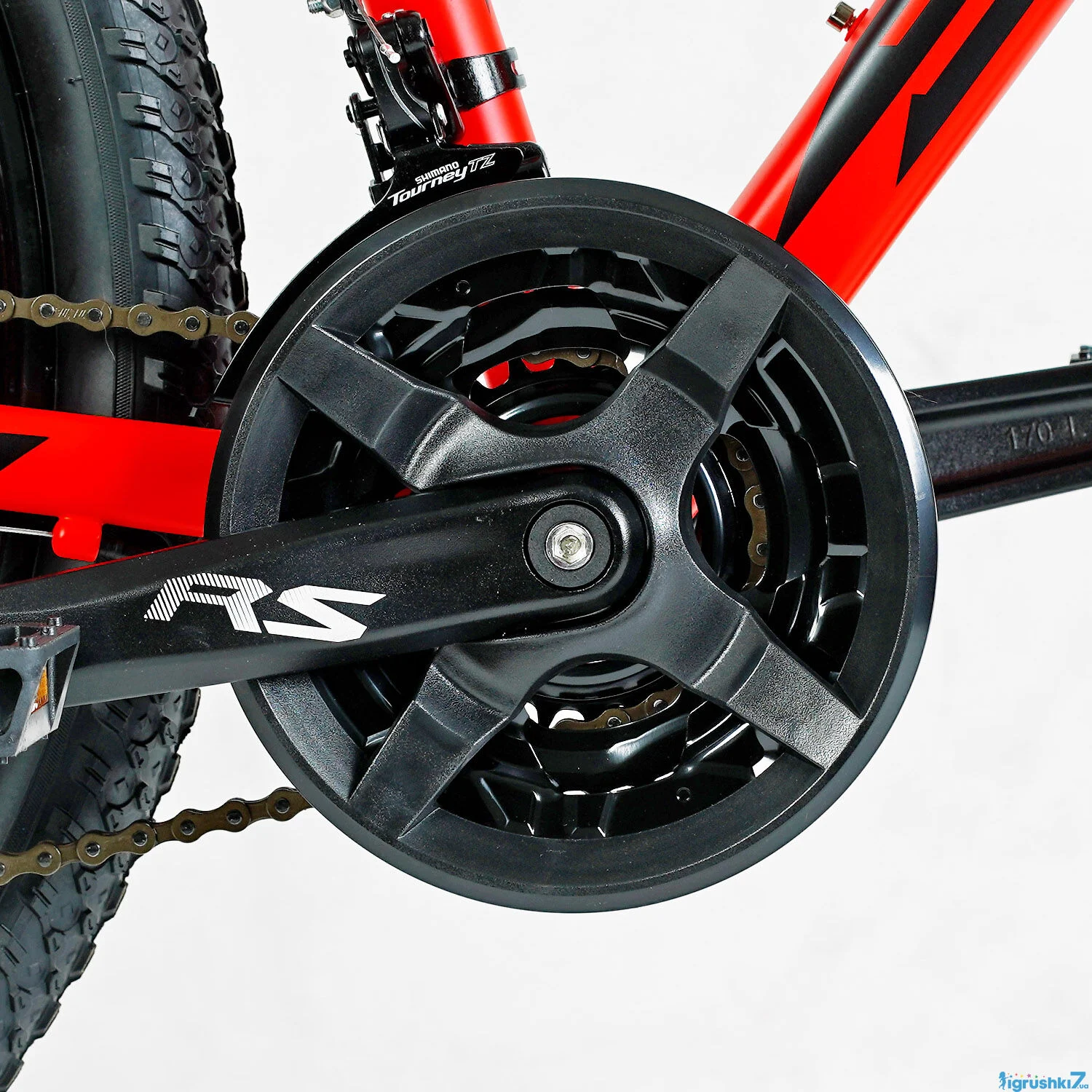 - Напрямна ланцюга: Shimano Tourney FD-TY300 (dual SIS index).