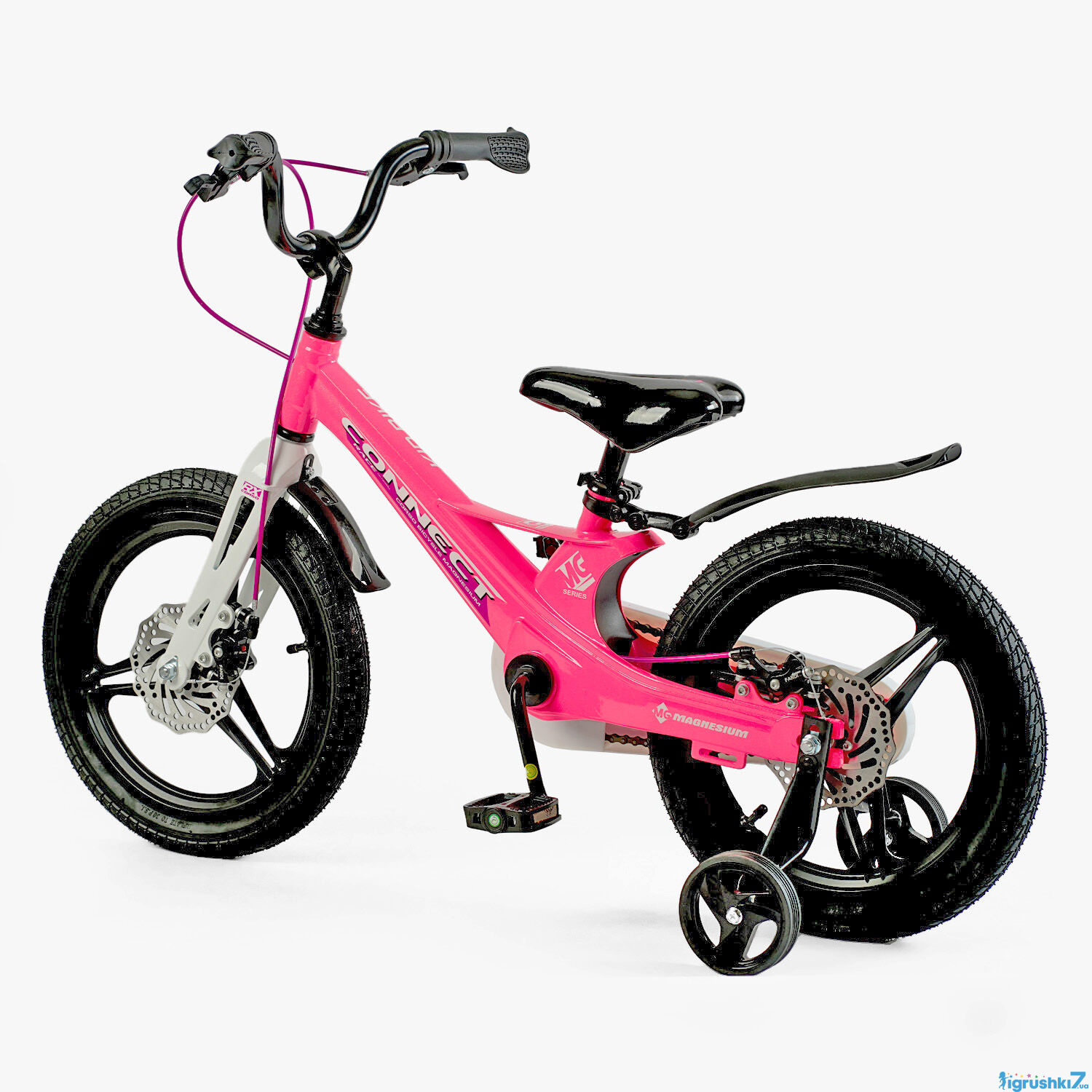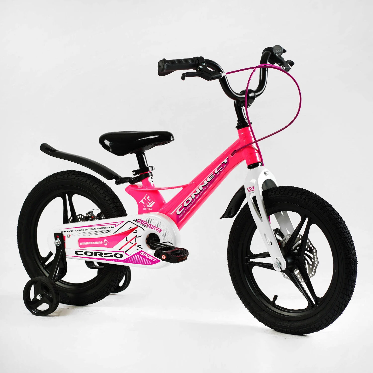 Велосипед 16″ дюймів 2-х колісний Corso «CONNECT» вирізняється своєю легкістю та міцністю завдяки магнієвій рамі, магнієвим дискам та магнієвій вилці.