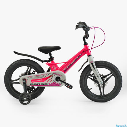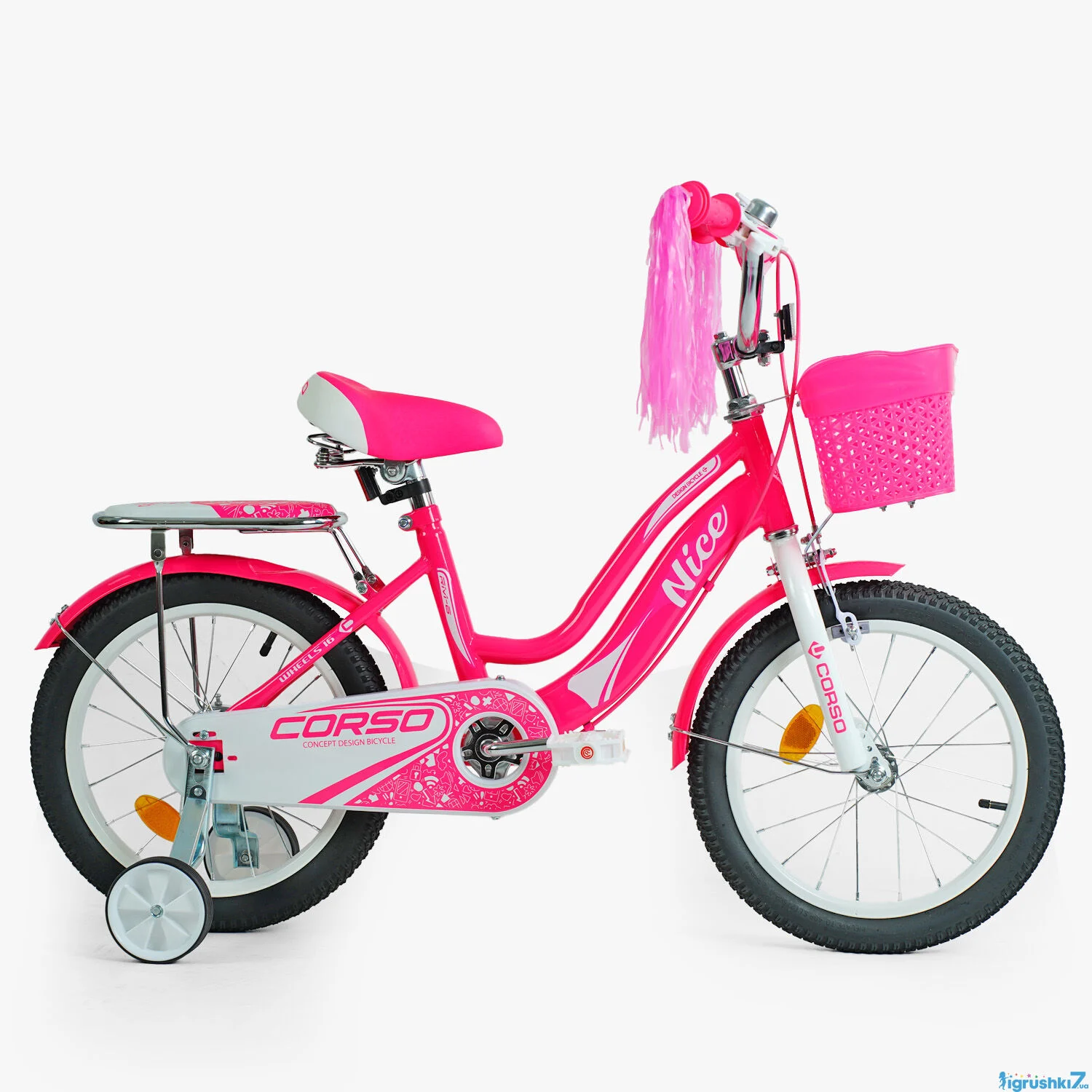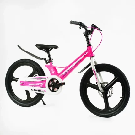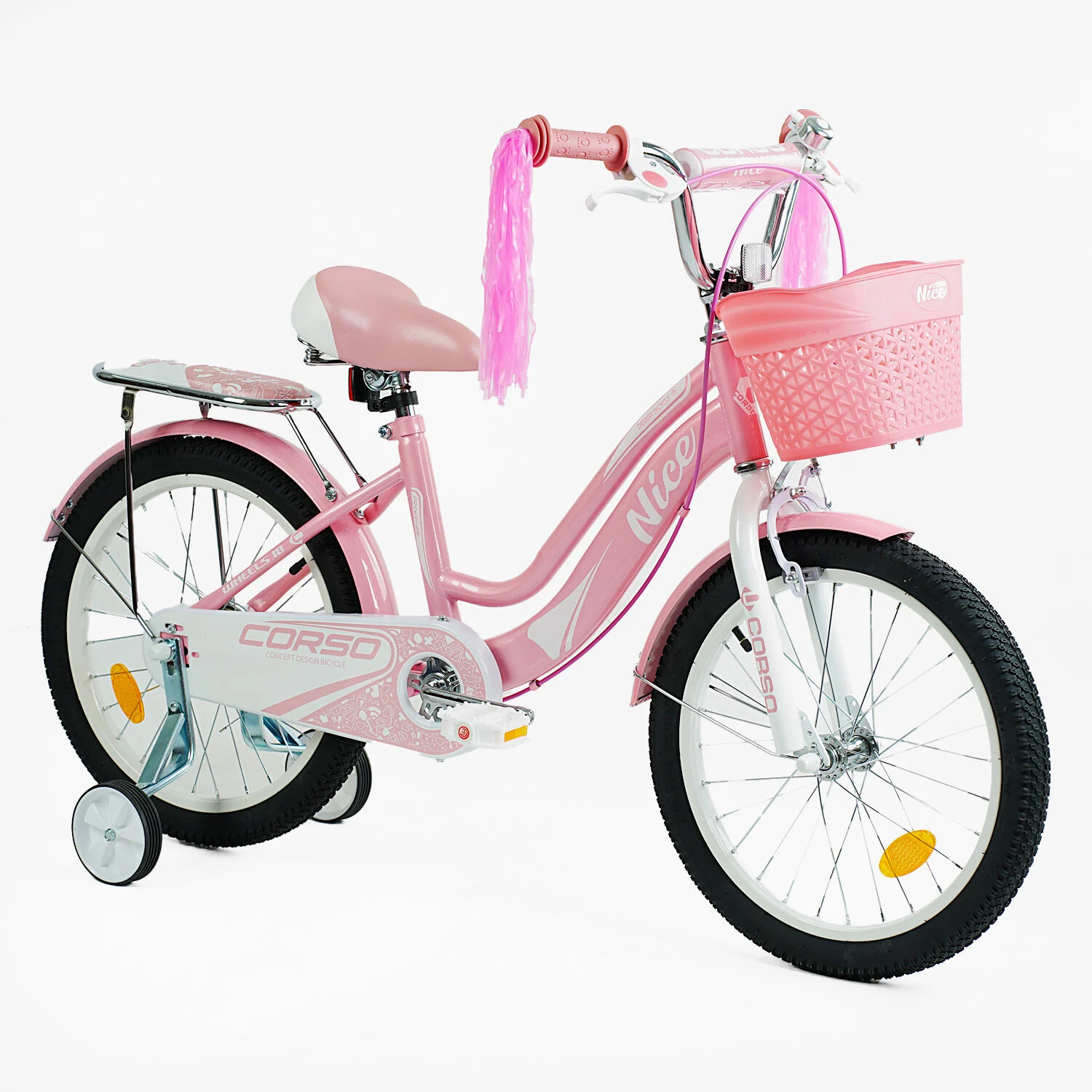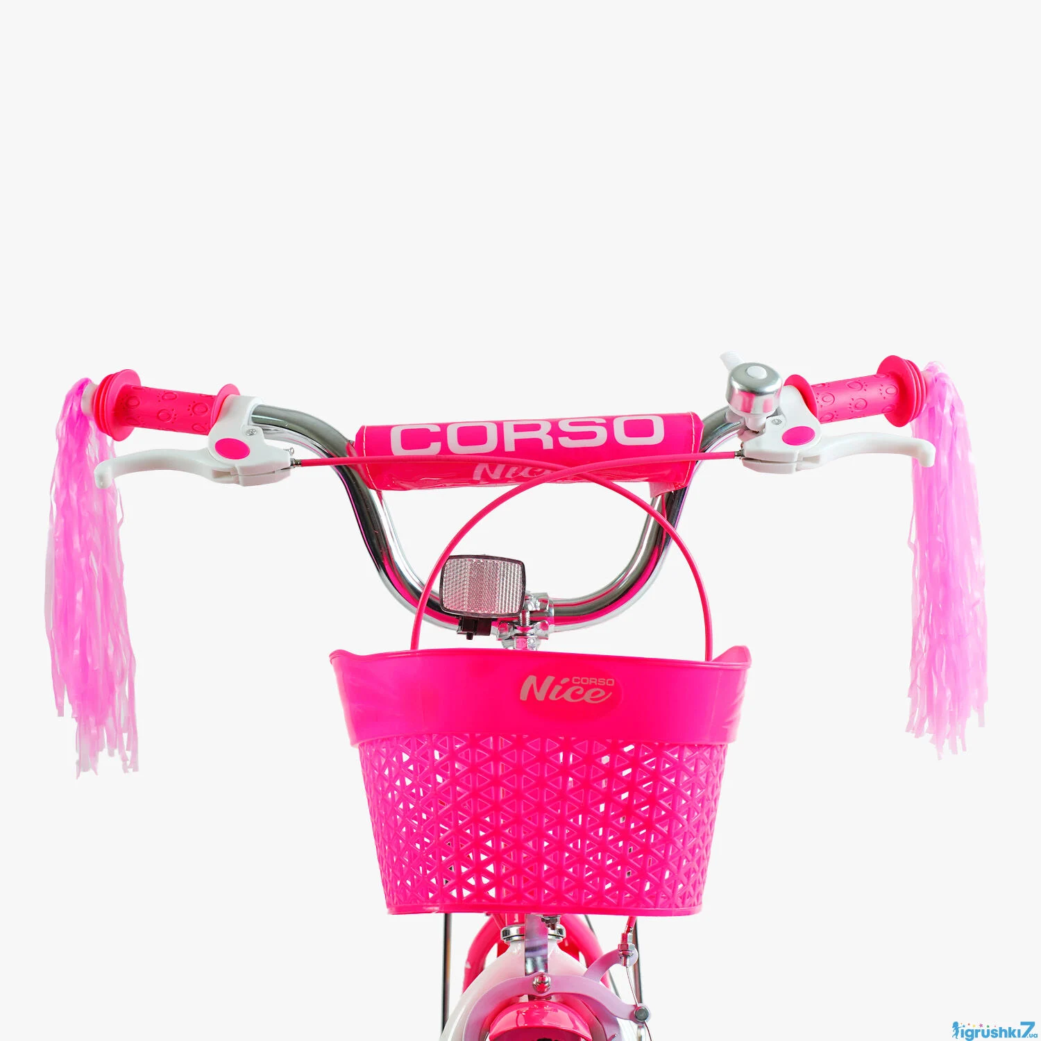 Велосипед “CORSO Nice” доступний з розмірами коліс 16, 18, і 20 дюймів, ідеально підходить для дітей віком від 5 до 10 років. Його сталева рама забезпечує надійність, а передні гальма типу V-Brake гарантують безпеку.
