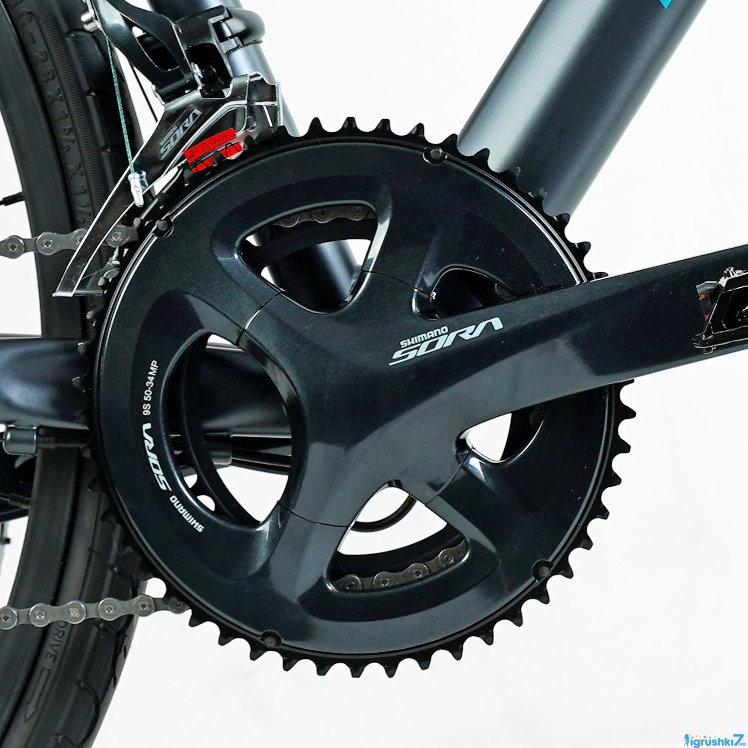 - Шатуни: Shimano Sora, алюмінієві, 175 мм, під інтегровану вісь.