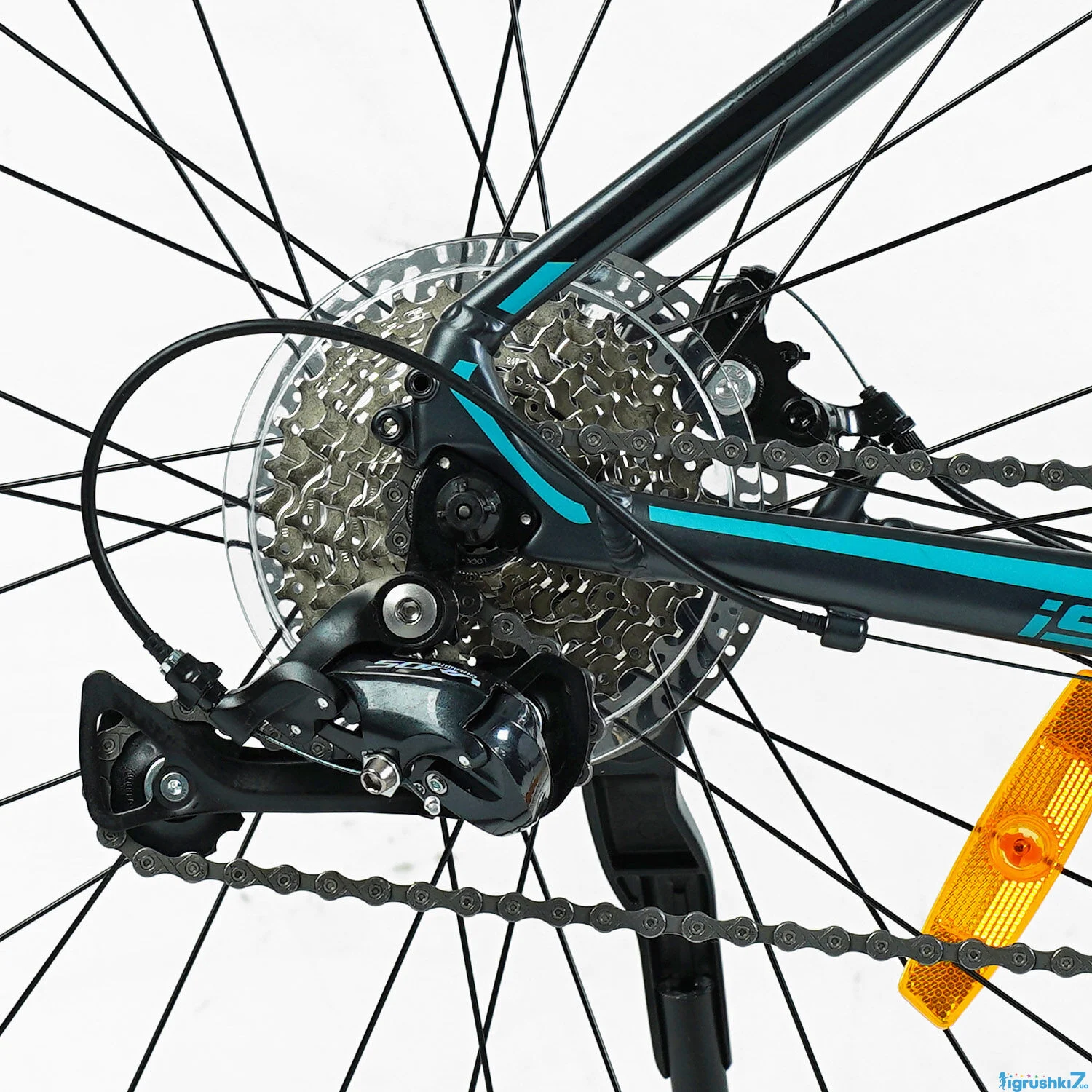 - Задня касета: Shimano SORA CS-HG400-9, 9 швидкостей, зірки 11-32T.