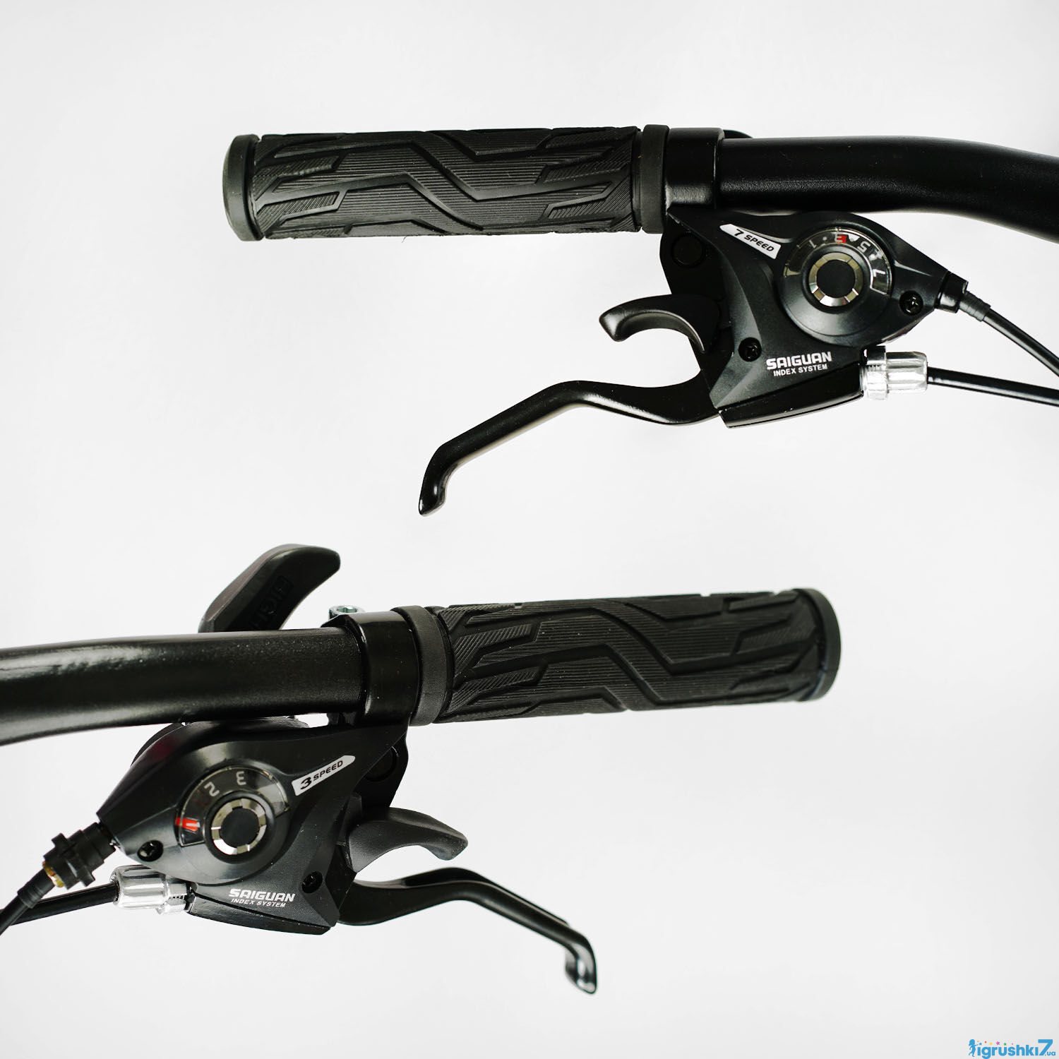 Модель обладнана 21 швидкістю, переднім та заднім перемикачами Saiguan, а також механічними дисковими гальмами 160мм для надійного контролю.