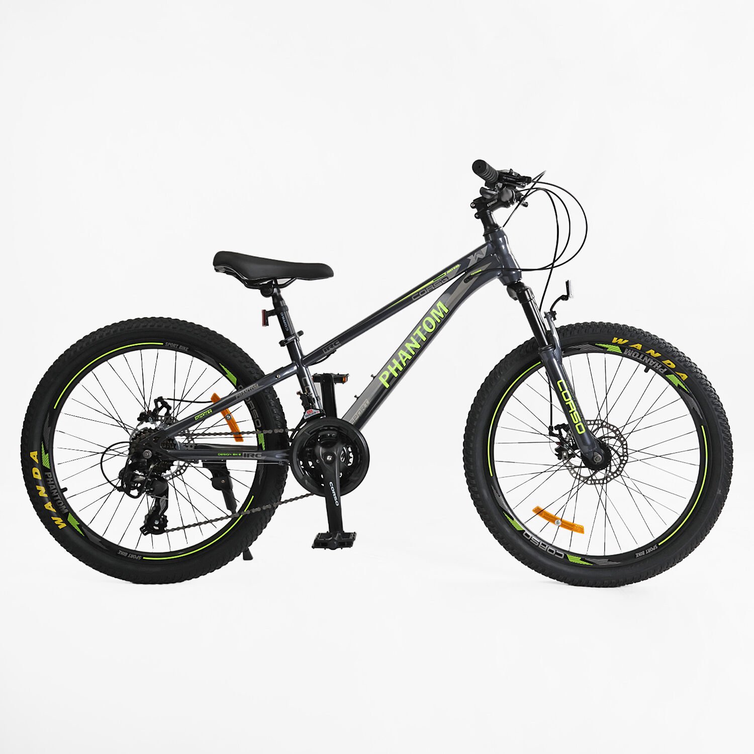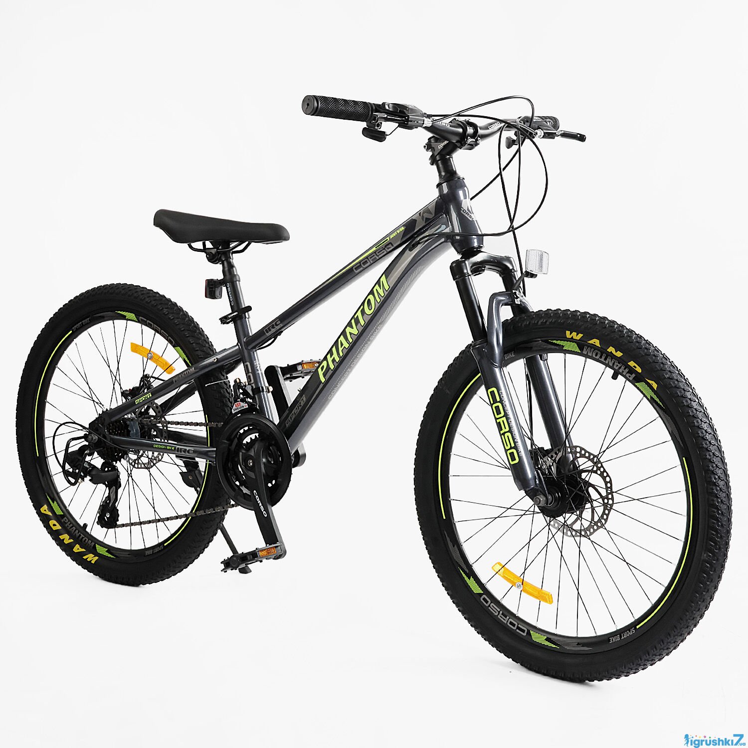 велосипед Corso PHANTOM 24 дюйми, дитячий велосипед з дисковими гальмами, спортивний велосипед для підлітків на 21 швидкість, велосипед Saiguan 24 дюйми, велосипед з амортизаційною вилкою для підлітків