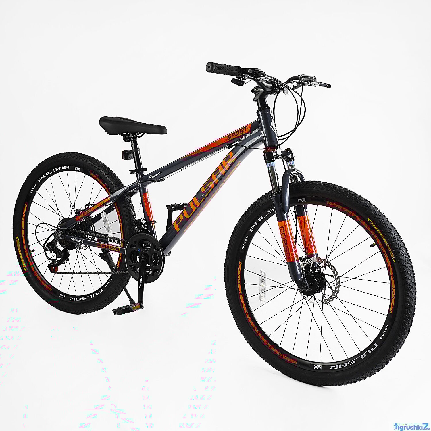 велосипед 26 дюймів al, спортивний велосипед Shimano, гірський велосипед з алюмінієвою рамою, Corso Pulsar 26 купити, велосипед з дисковими гальмами 160 мм, велосипед з амортизаційною вилкою, велосипед на 21 швидкість з промпідшипником